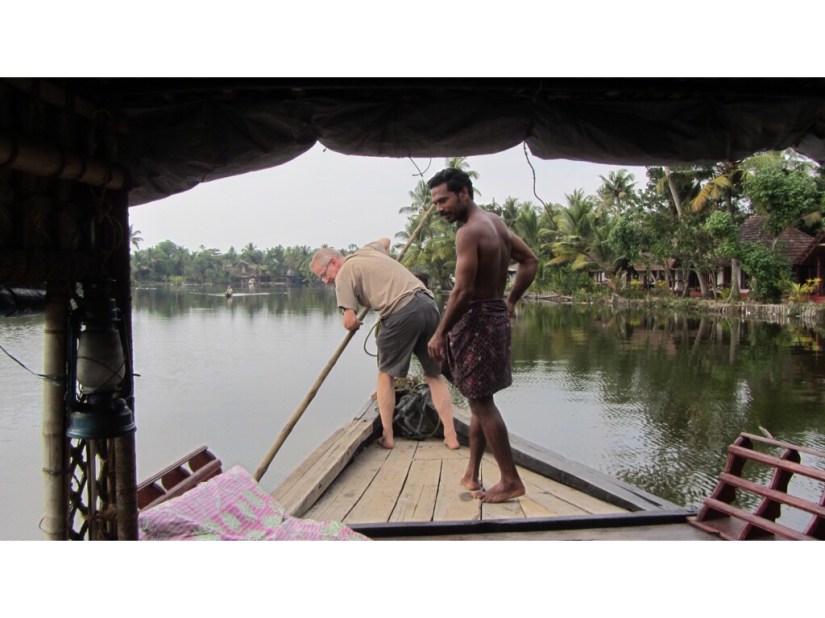 Also spent a whole day and night on a punted kettu vallam, or rice barge (literally a boat with knots, with thatch made from plaited palm fronds).