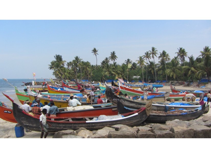 The backwaters eventually reach a bund which has the Arabian Sea on the other side …