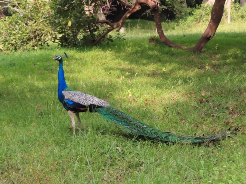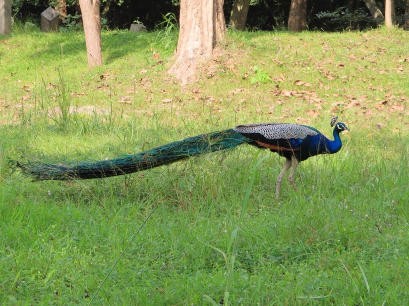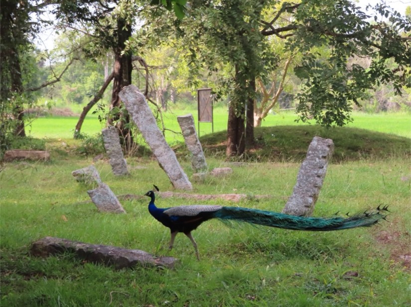 On our last afternoon, we took a short trip to one of the outlying site called Asokaramaya. The tuk -tuk took us through the countryside, and down a narrow track between the paddy fields where we came upon a peacock with his tail displayed, but weren’t quite quick enough with the camera …