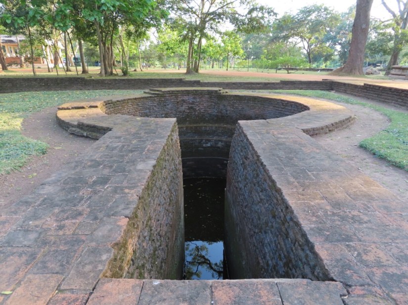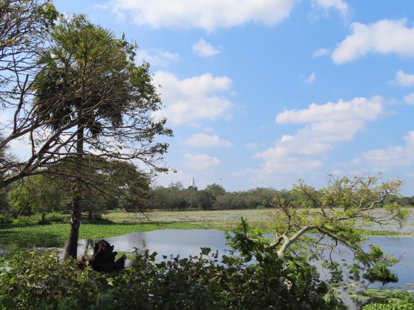 … and here is Nuwara Wewa, the largest of the three tanks, or reservoirs in Anuradhapura made by King Valagamba in the first century BC. King Dhatusena later constructed the Jaya Ganga canal, almost 90km long, and maintaining a steady gradient of six inches to the mile delivering water to Anuradhapura from the huge Kala Wela tank.