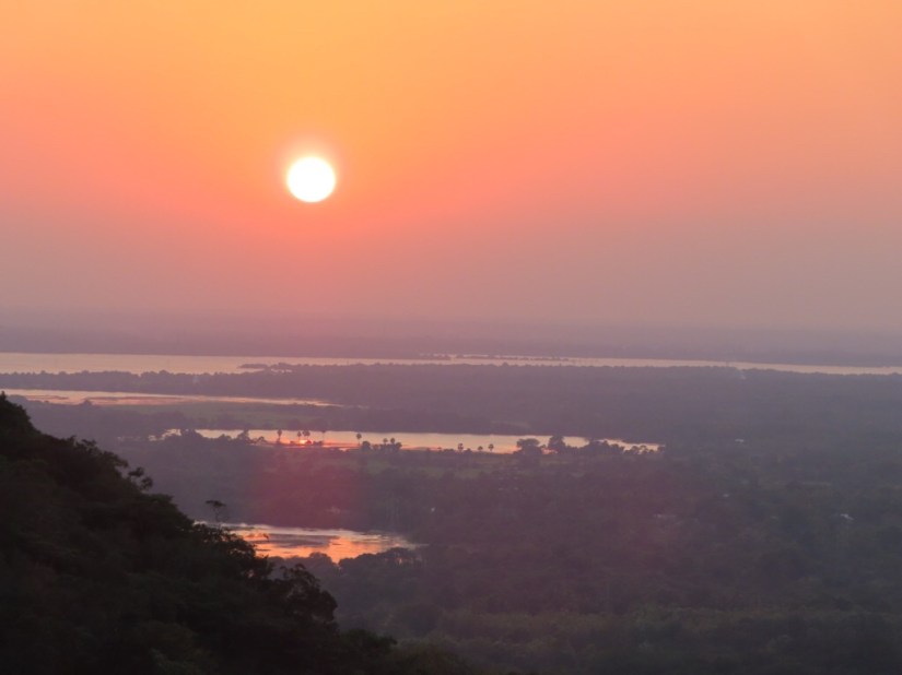 The tanks show up well in this view from Mihintale back towards Anuradhapura.
