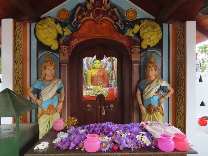 Kandy lies under the protection of four gods, each honoured by a temple or devale and we went to have a look. Fortunately they were all close by, and show how Hindu and Buddhist beliefs blend together here as the temples seems to be a mix of both.