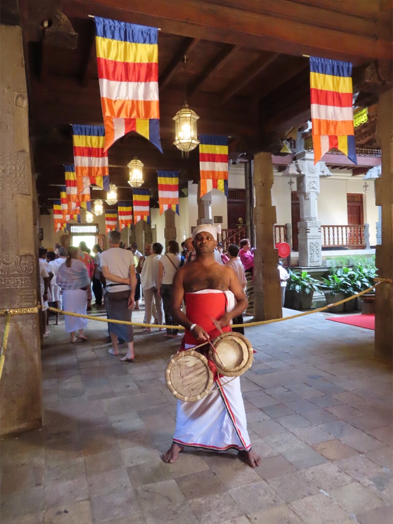 Next morning we made an early start so we could get to the Temple of the Tooth in time for the 9.30 puja (prayers and offerings) ceremony. We bought our ticket, checked our shoes and made our way to the Recitation Hall on the 1st floor and at just after 9.00 there was already a queue of people waiting for the ceremony, but the Hall wasn’t too busy.