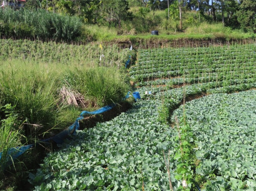 Later, we took a walk to see the waterfall, although were directed slightly astray and instead of taking the easy option and walking along the railway line, we continued down our road until it reduced to a path that seemed to be entering somebody’s garden. We asked, and a chap said he’d show us the way … all between the crops growing in the valley and a little treacherous in places … not at all what we planned.