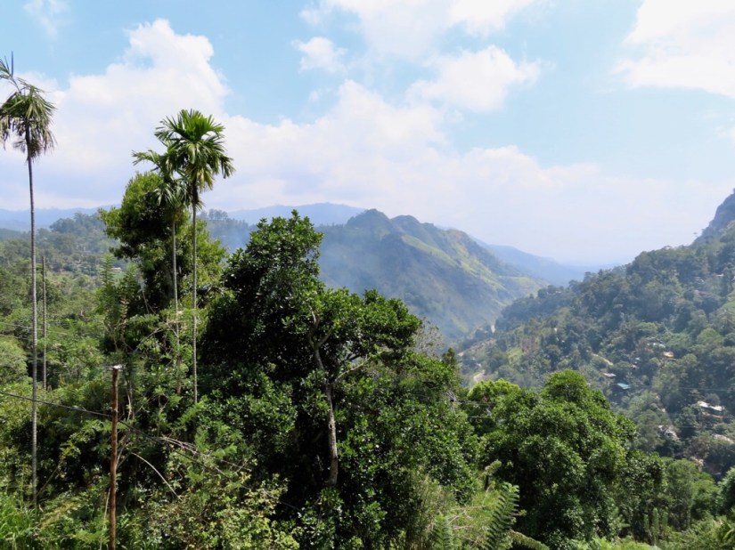 Most of our time here has either been spent walking, sitting or eating! So next day we walked up Little Adam’s Peak, up through a tea plantation on a good path with steps, although it did get a little rougher towards the top. At 1100m it was only half the height of Adam’s Peak, a major pilgrimage destination, traditionally climbed at night to reach the top by dawn … we decided to give this one a miss! Anyway, the views here were lovely, and with a breeze blowing, we just sat on a rock in the shade and enjoyed them.