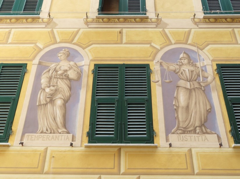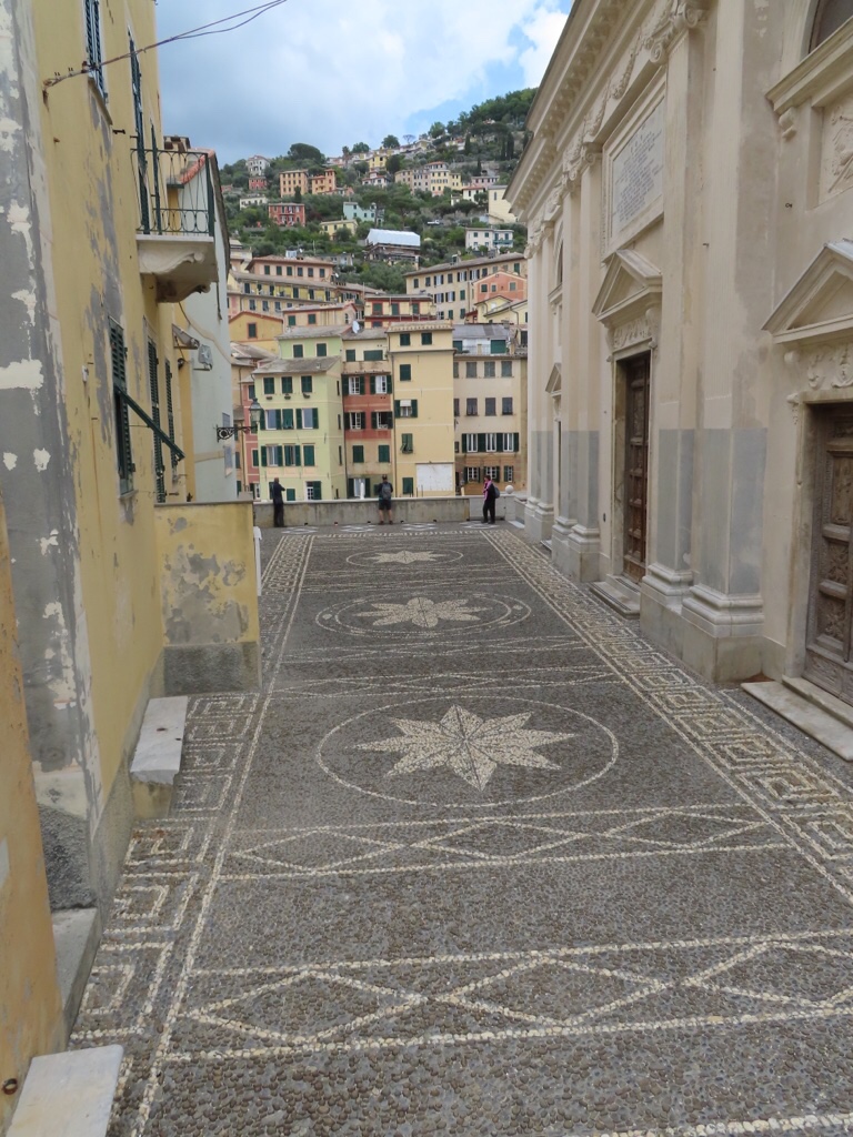 We sat outside in the sun and had some lunch then went to explore the medieval centre, dominated by the C12 Basilica Di Santa Maria Assunta. It had a typical Ligurian pebbled courtyard and a surprisingly ornate interior, but was once the chapel for Castello Dragonara, built to defend the town from Saracens.