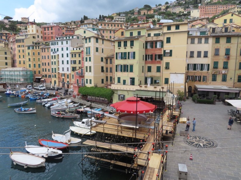 A short walk brought us to the front and we found Camogli to be similar to Vernazza … but bigger! The esplanade is very elegant as it sweeps round the bay, fronted by huge seven or eight storey buildings in the traditional warm yellows and oranges of the region, a reminder of the town’s glorious past.