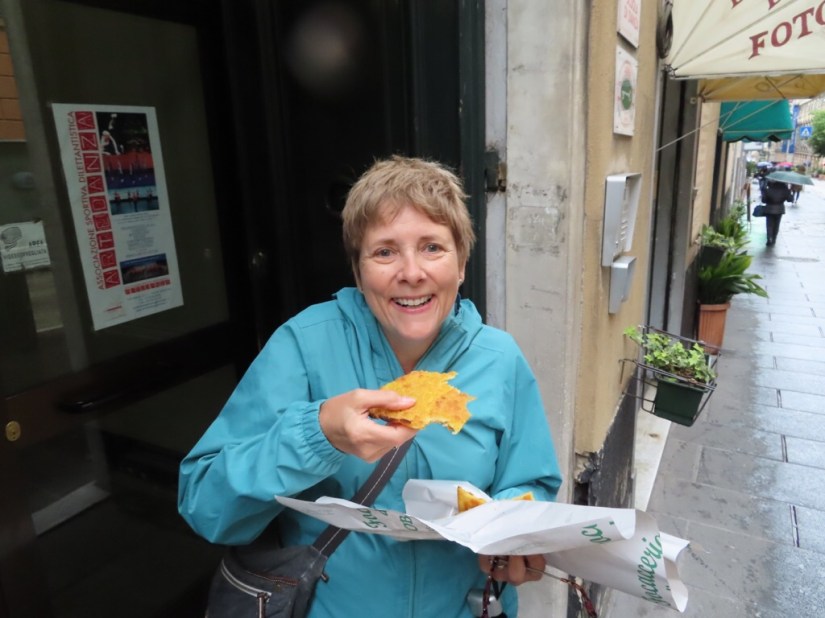 Lunch was takeaway farinata, a local chickpea pancake made in a large pan and served hot … tasty!