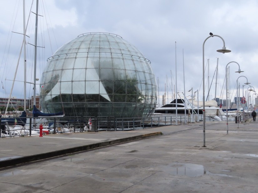 … and continued round the port renovated by local architect Renzo Piano including Il Bigo, a panoramic lift inspired by old cranes and the Biosphere, containing tropical plants. there was also a maritime museum and aquarium, but as it was still grey, chilly and damp we walked past pretty quickly.