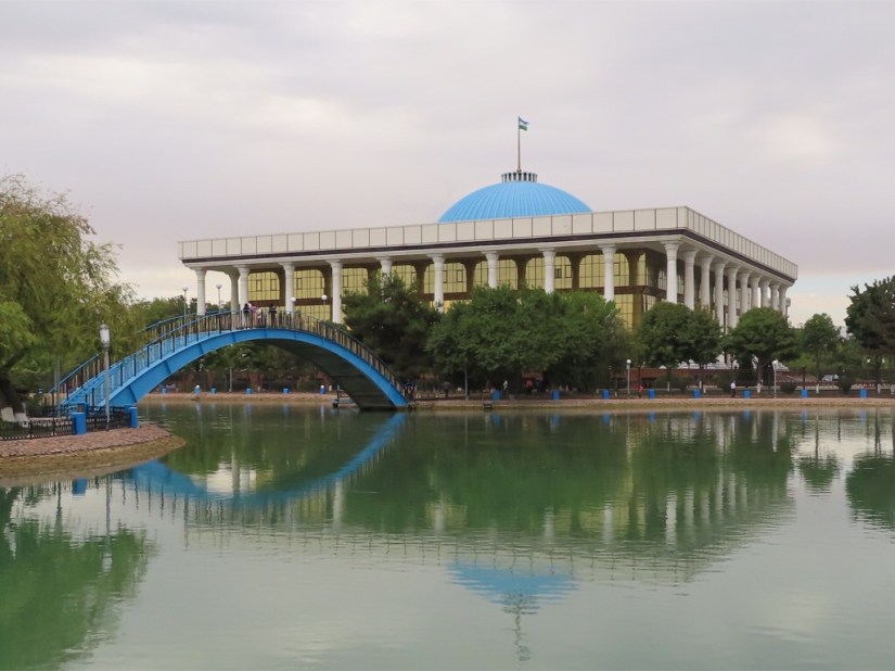 … and also a boating lake with Oliy Majlis, the Uzbek Parliament building behind.