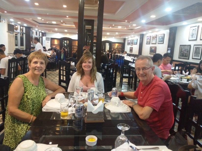 Our last couple of evenings were spent at Geraldo’s family restaurant, popular with locals for celebrations and we must have heard Happy Birthday sung at least 6 times! We tried various stews including fish kare kare with peanut sauce, chow pat chin with and without prawns, an aubergine omelette and uni kinampay which is a special purple yam only grown on Bohol.