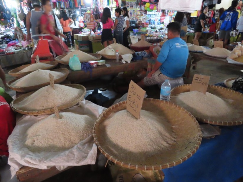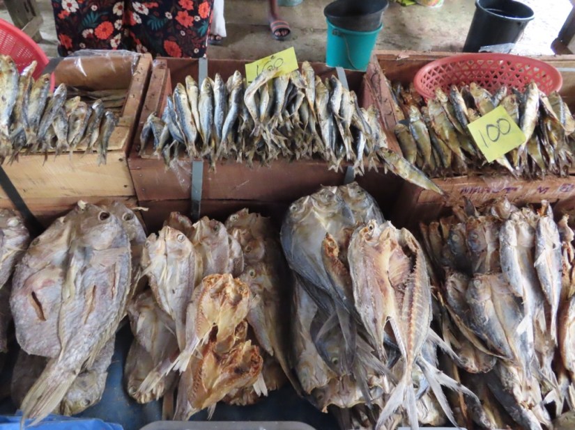 The choice of different types of rice, which we had already seen growing in paddy fields beside the roads, was mind boggling with at least 20 varieties together with meat, fish, veg and even tobacco.