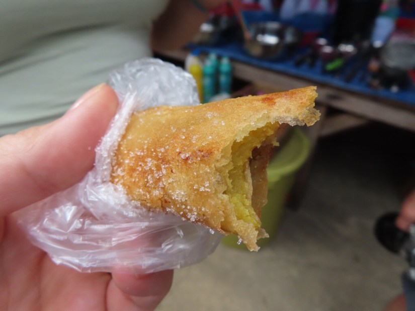 We bought some snacks, the best of which were these hot spring rolls filled with camote or sweet potato.