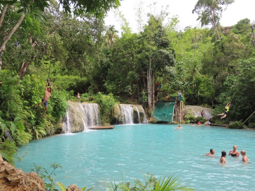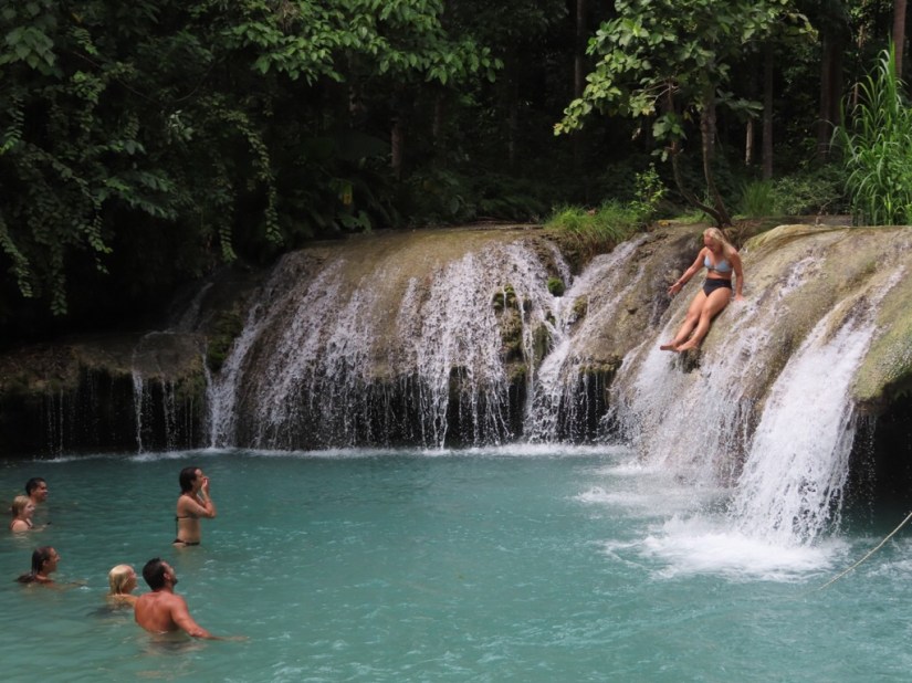 Then on to Cambugahay Falls, the most popular swimming hole on the island, popular with locals and visitors alike. This is a water park, Filipino style with two small waterfalls with large swimming holes at the base of each.