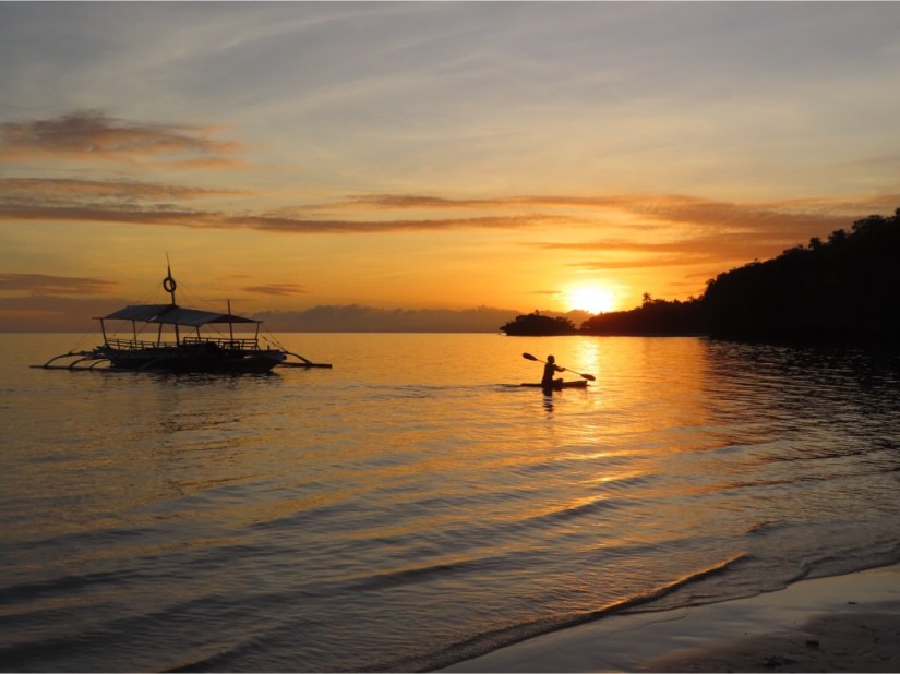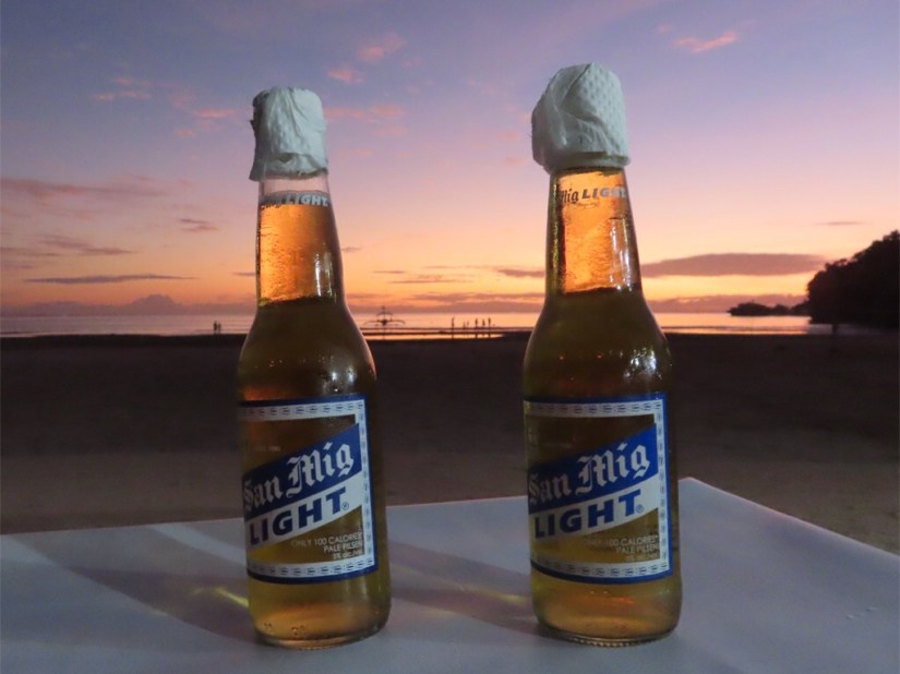 The islands are named for the camotes or sweet potatoes which thrive on the rocky topsoil here. We arrived on Pacijan, the largest of the four islands and are staying at Santiago Bay Garden Resort, an older hotel built into the cliff overlooking the white sands of Santiago Bay with an interesting aesthetic which relies on painted concrete. We arrived on the Chinese New Year and there were lots of Filipino and Korean families there for the weekend, with the shallow waters of the bay ideal for small children.