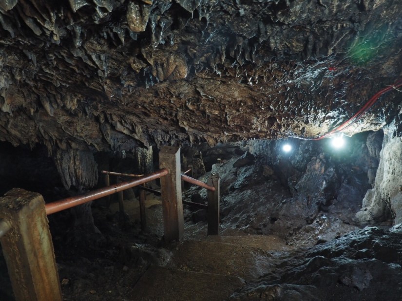 We were given hard hats and descended a number of concrete steps, took off our sandals to wade through some water, then reached the cave itself.
