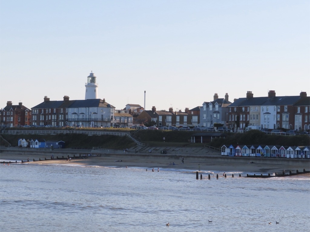 At the end of the pier we looked back at the sandy beach, lined with beach huts backed with Victorian villas and the lighthouse peeking out behind. Southwold was already attracting visitors at the beginning of the 19th century, but by the end it was a busy resort with three new hotels, a railway station and steamer service.