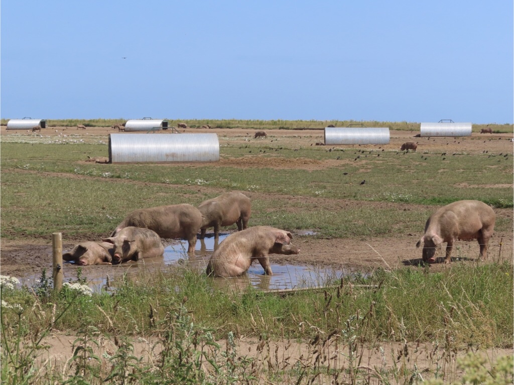 Then we made our way about a mile down the footpath to the beach, past a field of pigs, having a lovely time in a muddy puddle.