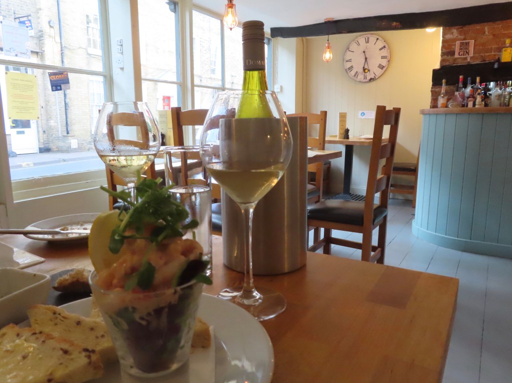We returned to Southwold in time to shower and walk to Coasters for dinner, having booked a table for 6pm. We had a fabulous meal of crayfish and local pork for me and blue cheese and walnut pate then veggie gnocchi for Chris, all washed down with a very nice dry French white.