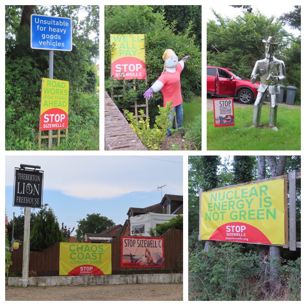 The B road wasn’t particularly wide, with some nasty turns and we started seeing protest signs. We had already seen a sign in a house window in Southwold about the proposed building of Sizewell C.