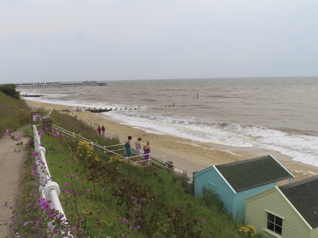 We were all packed up and left the Wagon Store by 9.00. It was a great base for our stay in Southwold and we left a thank-you message for Sue and Eric. It wasn’t until we drove down to the harbour to get a crab from Samantha K to take home that we realised how stormy the sea was. We were surprised to still see hardy bathers …