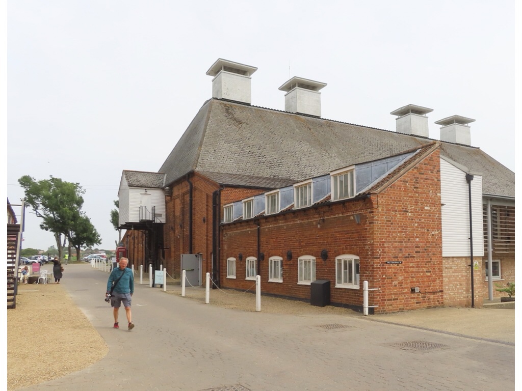 We did make one stop, for a coffee at the Maltings in Snape as being so close, we felt we ought to look round. Once used to malt barley for the brewing of beer, the Maltings became redundant in the 1960’s and Benjamin Britten and Peter Pears converted the largest malthouse into a concert hall. This gave a permanent home to the famous Aldeburgh Festival of classical music which is held each June and later additional buildings were converted into a centre to educate and support young musicians. Today there is a collection of shops, galleries and restaurants which we wandered round. We saw an underwhelming exhibit by Maggi Hamling, and some rather swanky shops selling goods that wouldn’t have been out of place in Liberty’s or Fortnums and had coffee and some delicious cake.