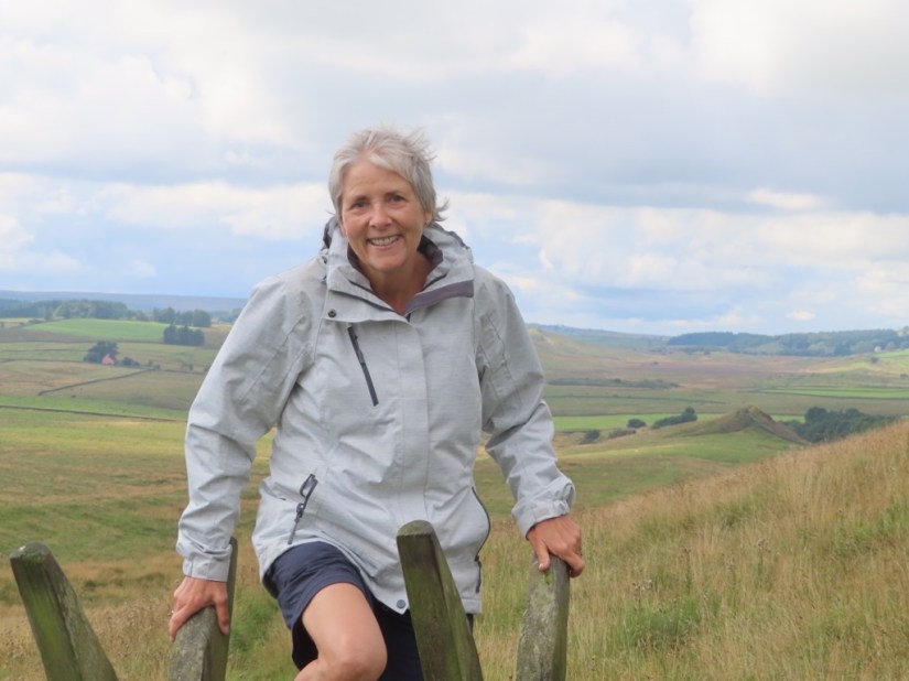 When I opened the curtains, the cloud was right down and we were surrounded in white! Fortunately it soon lifted and by the time we were up and breakfasted it was looking brighter, if cloudy, so we packed some sandwiches and set out for a walk. On the way we stopped to take a photo of the view …