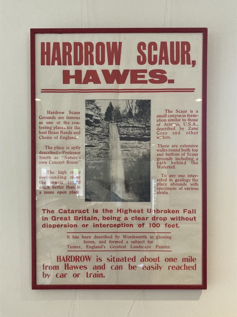 … our first stop was Hardraw Falls, famed for being the highest single drop waterfall in England at 100ft. As we saw from the poster in the tea room, it’s been an attraction since Victorian times, but today was somewhat quieter with a choice of path either to the base or the top of the falls. We chose the easy path with the best view of the falls …