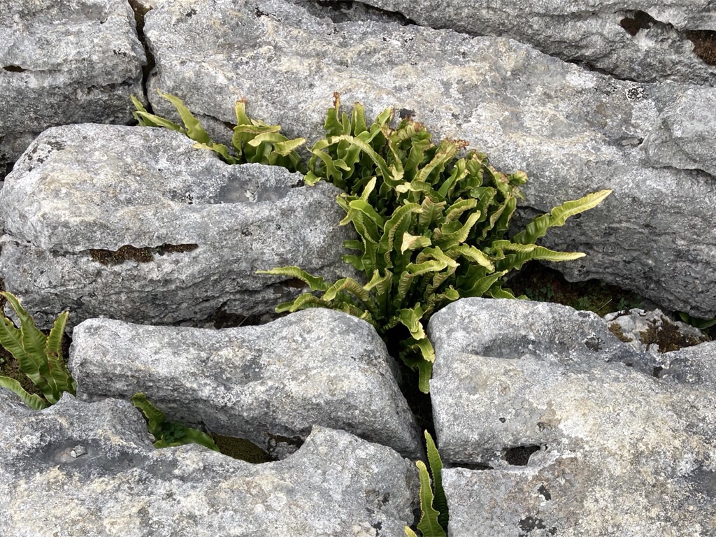 Clints are the blocks of limestone that constitute the paving and grykes are the fissures that separate them where a varIety of plants thrive as the sheep can’t get them!