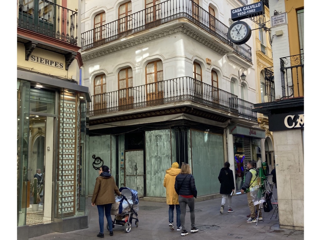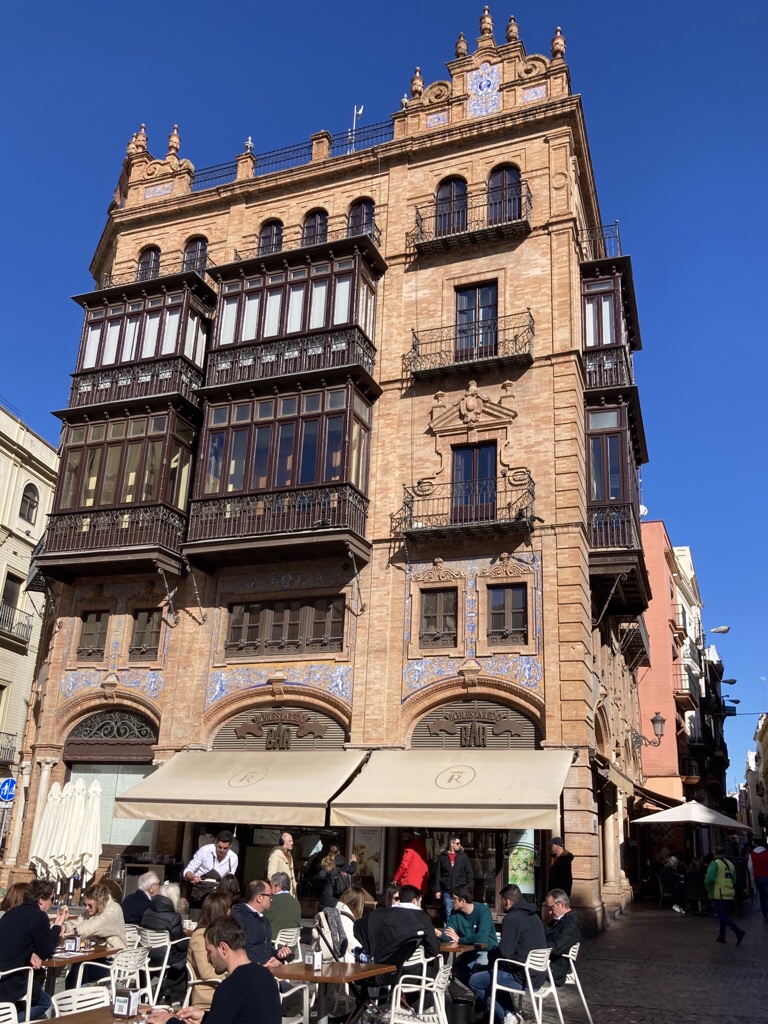 Calle Sierpes is a shop-lined pedestrian street which cuts through the heart of Seville. We’ve seen it bustling on a weekday when the shops are open, but still busy on a Sunday with people stepping out. It begins in Plaza San Fransisco, which once contained a monastery, but now the Ayuntamiento or Town Hall, it’s facade a riot of carved decoration.