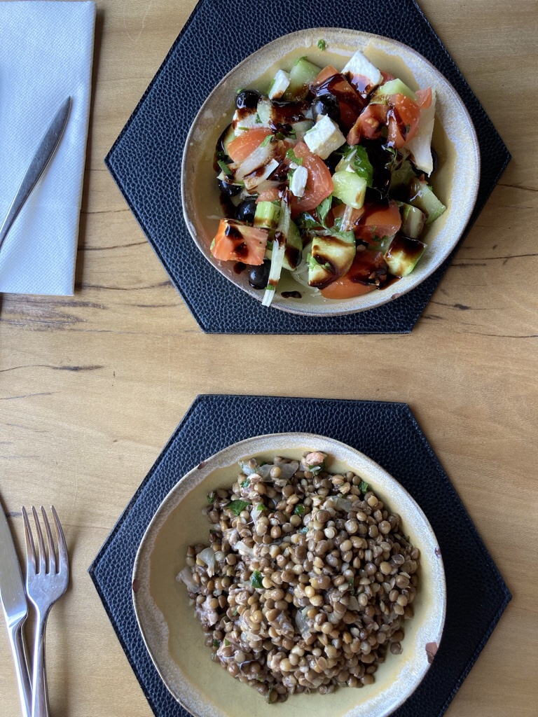 … then following with pollack and ratatouille for me and a veggie pizza for Chris.