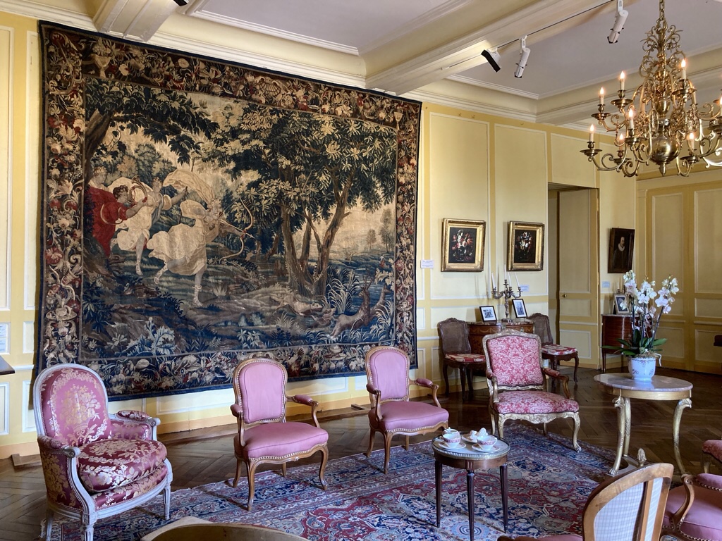 Chateau de Villandry was just close by, another C16th building, with a redesigned C18th interior, including some fine tapestries and very pretty fabrics.