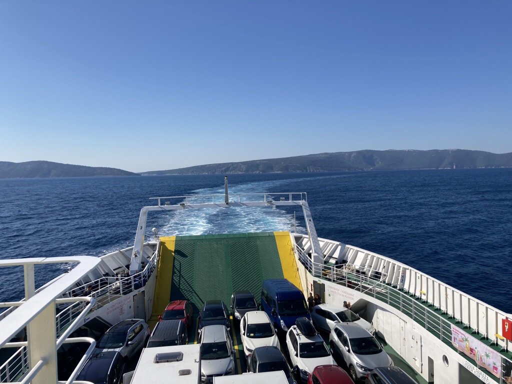 Another day, another ferry but well before we reached the port, the queue of vehicles snaked down the hill before us and we wondered if we’d get on! In the end, they laid on an extra sailing to cope with demand and we relaxed as we said farewell to Cres.