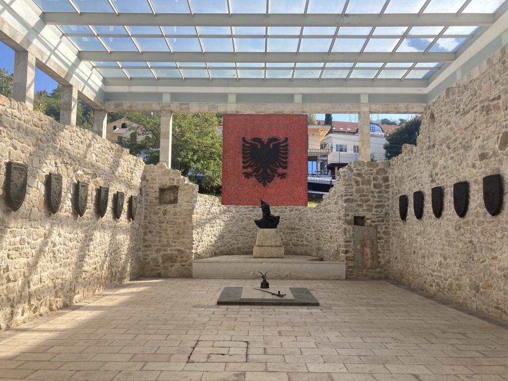 The symbolic tomb has a copy of Skanderbeg’s sword and his famous goat-head helmet, while the originals are in a museum in Vienna. Plaques on the walls record all his battles.