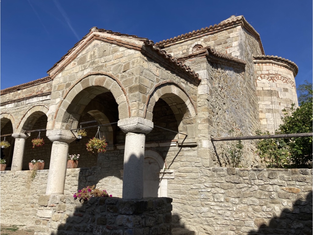 We packed up and left Tirana behind to travel south. Our first visit was to the Ardenica Monastery, built by a Byzantine Emperor in the C13th. It lies just beside the Via Egnatia, part of an important route from Rome to Constantinople and would have been a welcome refuge for travellers.