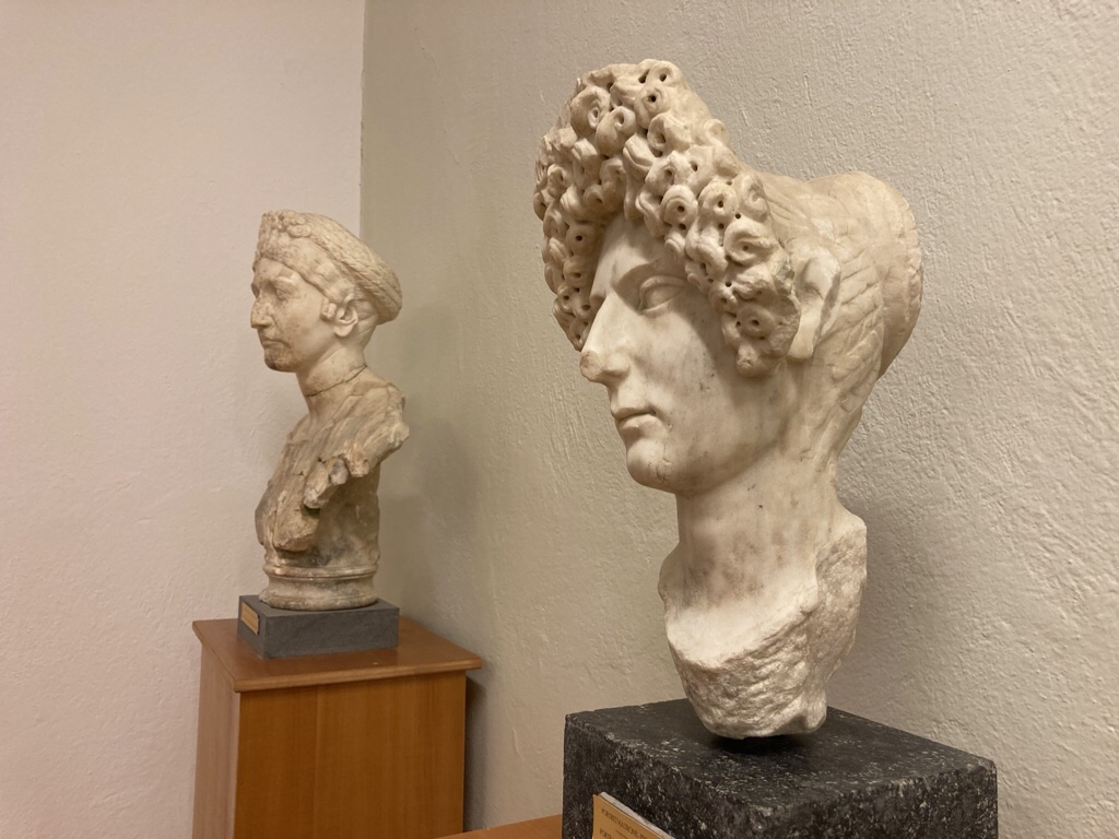 … and now contains the museum with all the archaeological finds. I especially liked this lady who looks like a Jane Austen heroine with her elaborate hairstyle!