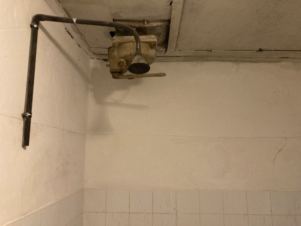 … into the decontamination room with a sound recording of dripping water to add to the unease.