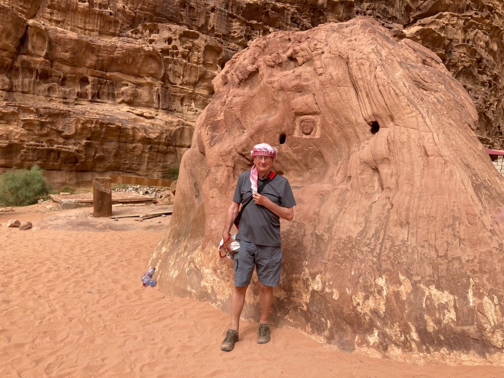We also stopped at the site of the Bedouin Camp where Prince Abdullah first met Lawrence in the early 1900s. A rock with a small memorial to each of them records the occasion …