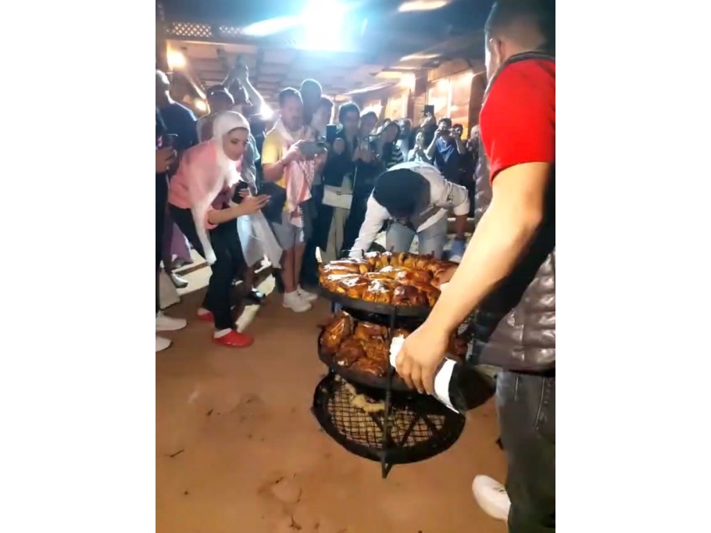 Dinner was cooked in a traditional underground oven, called a Zarb and great ceremony was made of removing the sand and revealing the metal stand with meat and vegetables which were served with the buffet.