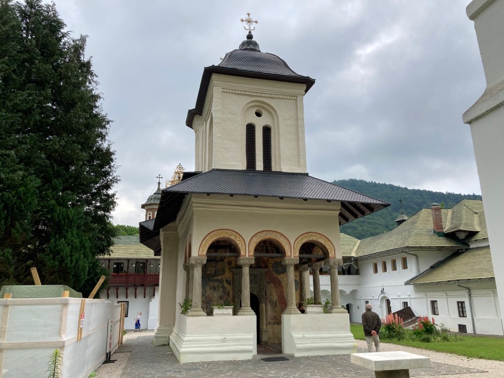 There has been a monastery in Sinaia since the C17th, named after St Catherine’s on Mount Sinai. A larger church was added in the C19th and the site became an annual summer residence for the Royal family, seeking the healthy mountain air, until the nearby Peleș Castle was completed in 1883 for King Carol I of Romania and the town grew into a resort.