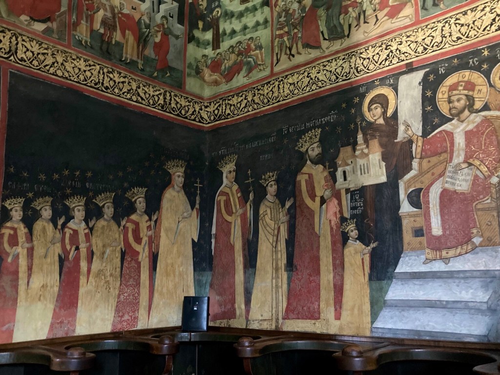 There is also a Tree of Jesse and Last Judgement, but here we could take photos inside, so here is the votive painting of the presentation of the monastery to Christ …
