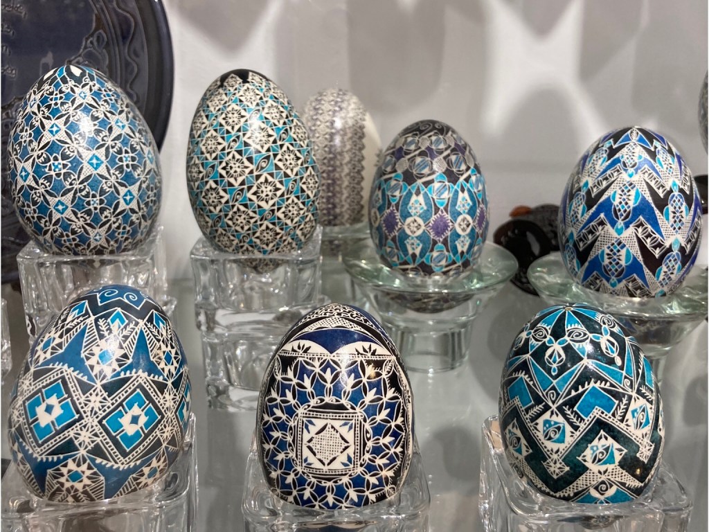 Across the road was a painted egg museum containing some 5,000 eggs painted by Lucia Condrea who spent her life practising this popular Romanian folk custom. Using wax resist techniques, she took her patterns from local tradition but was also inspired by nature, carpets, lace and imagination!
