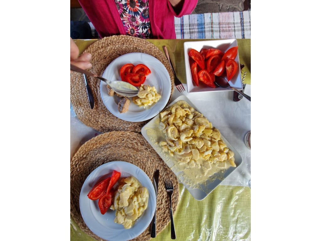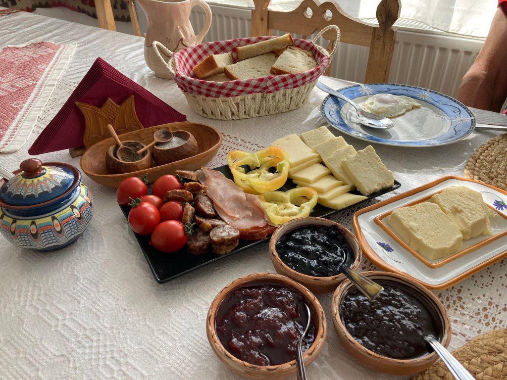 Iona and Lucia gave us the opportunity to enjoy traditional Maramureș hospitality and delicious home cooked food prepared from their own produce. We had dinner both nights starting with vegetable soups, then had new potatoes cooked with boiled eggs and sour cream with a tomato salad one night and polenta with mushroom stew the other. Homemade cake completed the meals, and certainly a drop of pakinka!