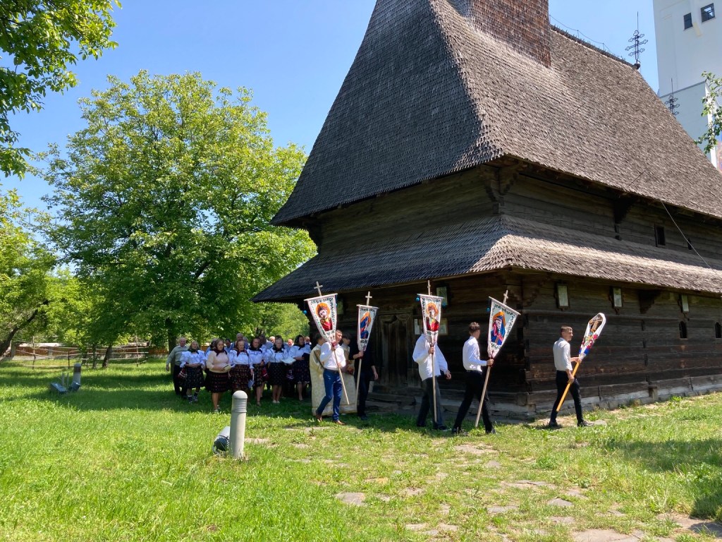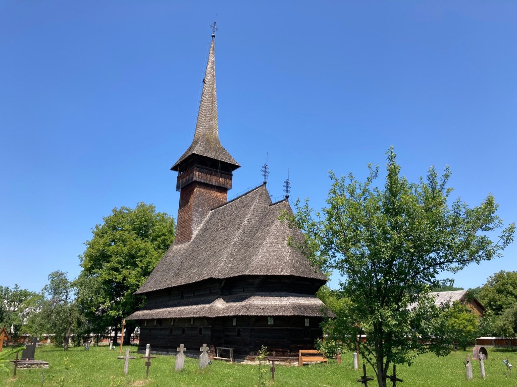 In 1278, Orthodox Romanians were forbidden by their catholic Hungarian overlords to build their churches in stone, so they just built in wood instead. Today is Sunday and first town we stopped in was Bogdan Voda, renamed in in the 1960’s in honour of the local ruler who founded the principality of Moldavia in the C14th.
