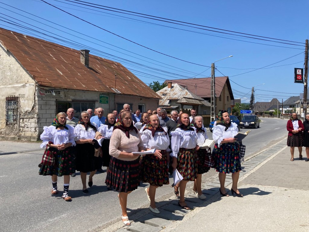 … and it shortly became apparent why a couple of people were waiting around as a procession approached from down the street, singing, all in their Sunday best.