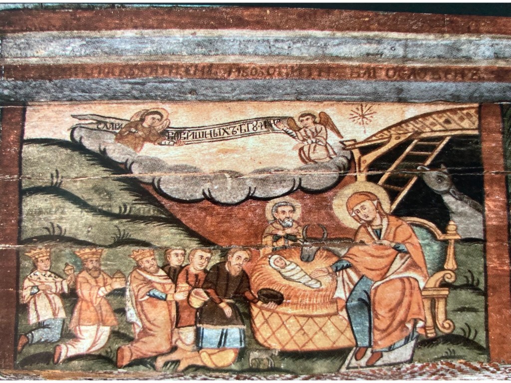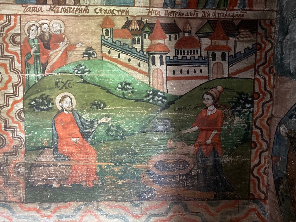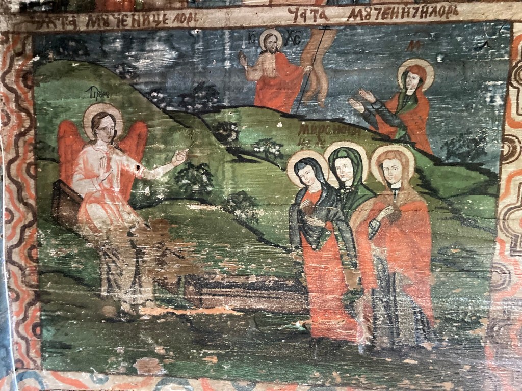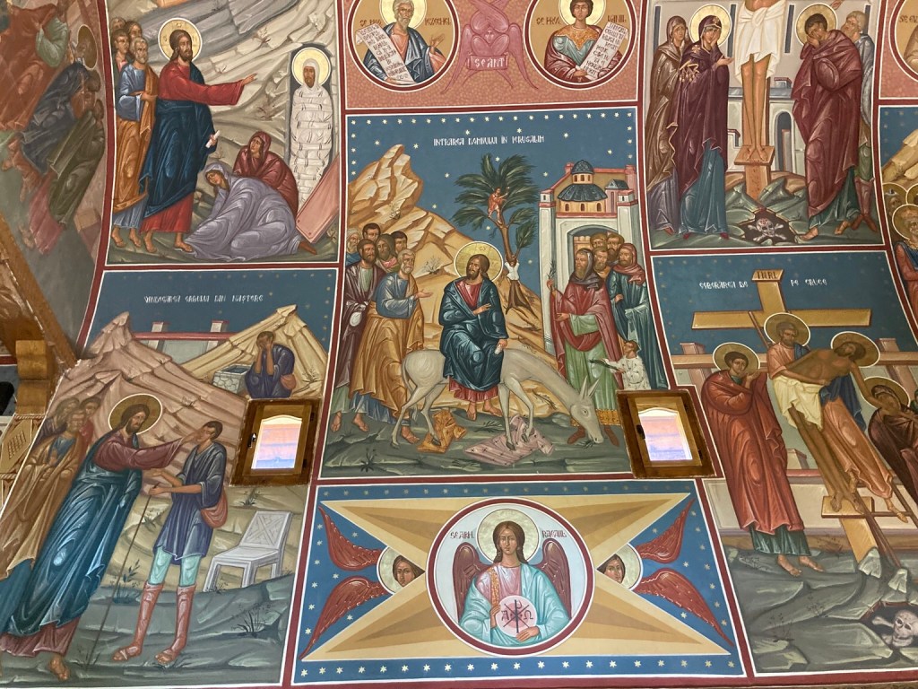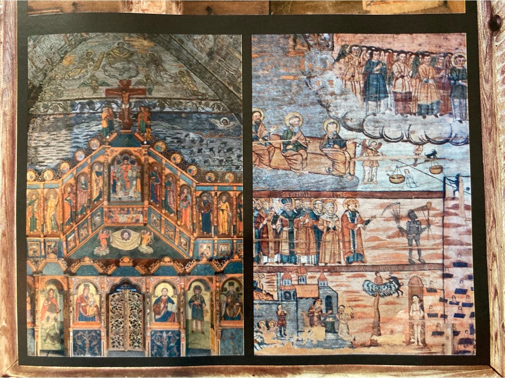 The priest then let us into the church which was empty of furnishings and seemed unused, but had painted murals on every wall, most showing bible stories and images from the life of Christ. While we couldn’t take photos, we bought a leaflet and here are some pictures, of the Iconostasis and Doomsday & Death …