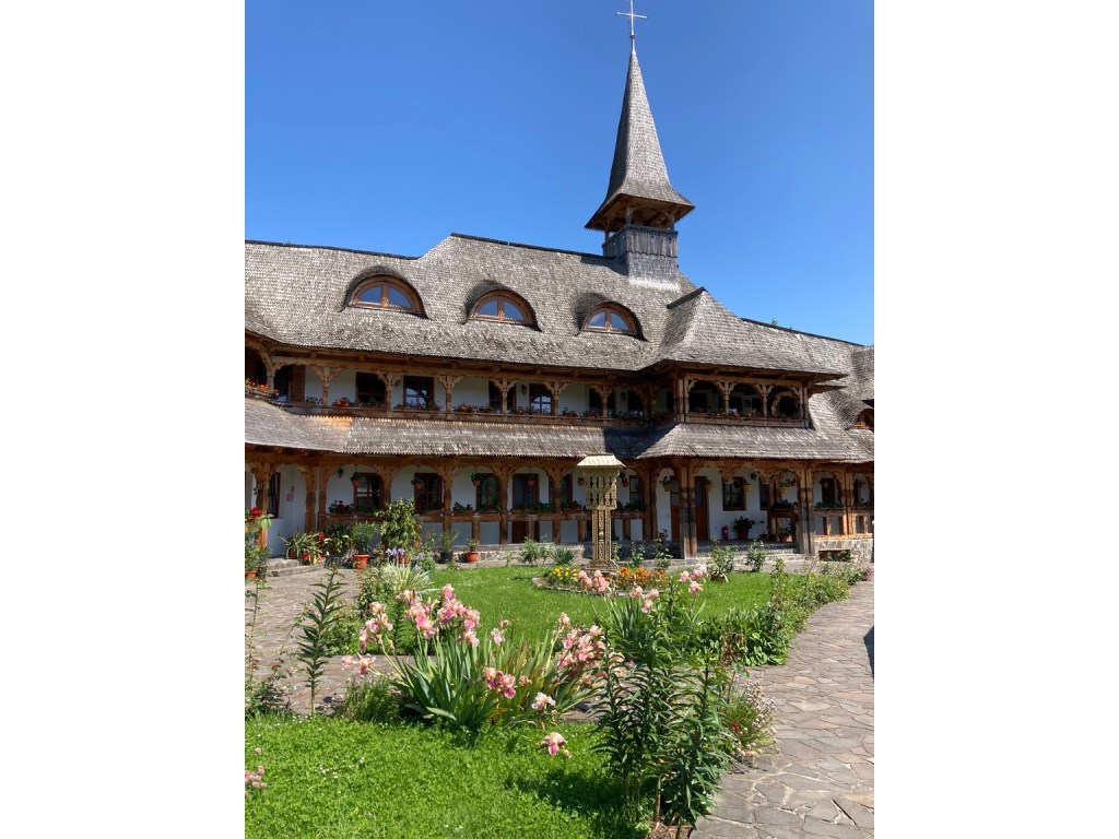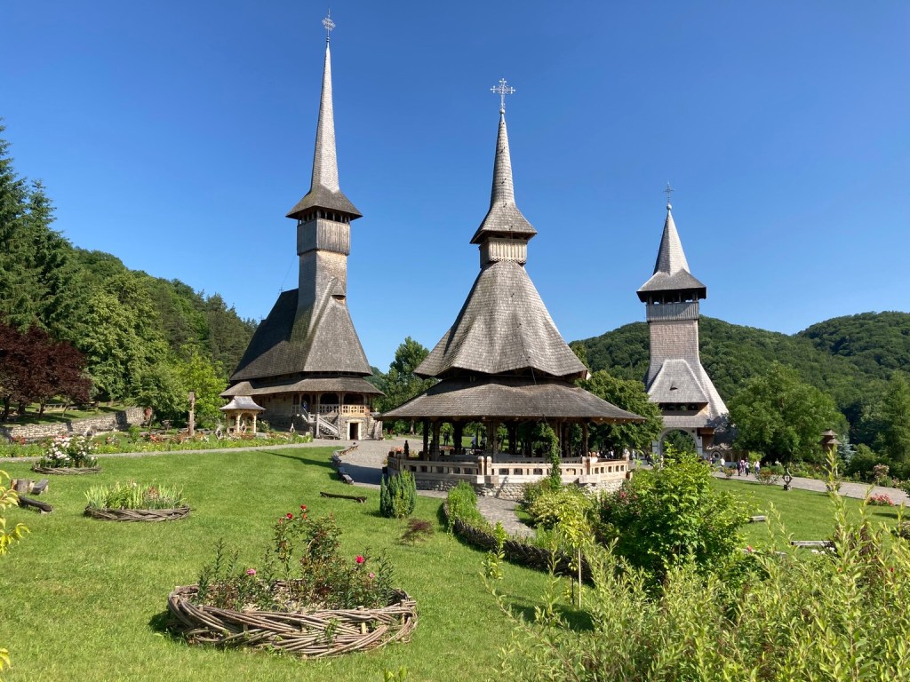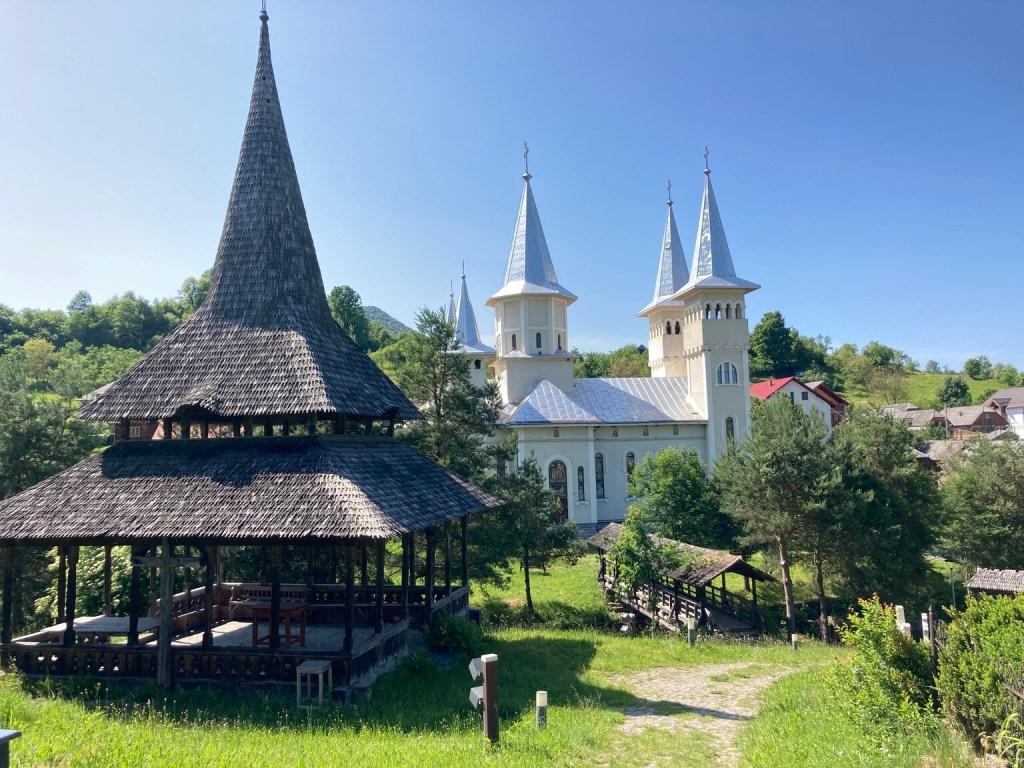 We saw a sign for Botiza Transfiguration Monastery which was built in 1991 in the traditional style. It had a pretty garden …