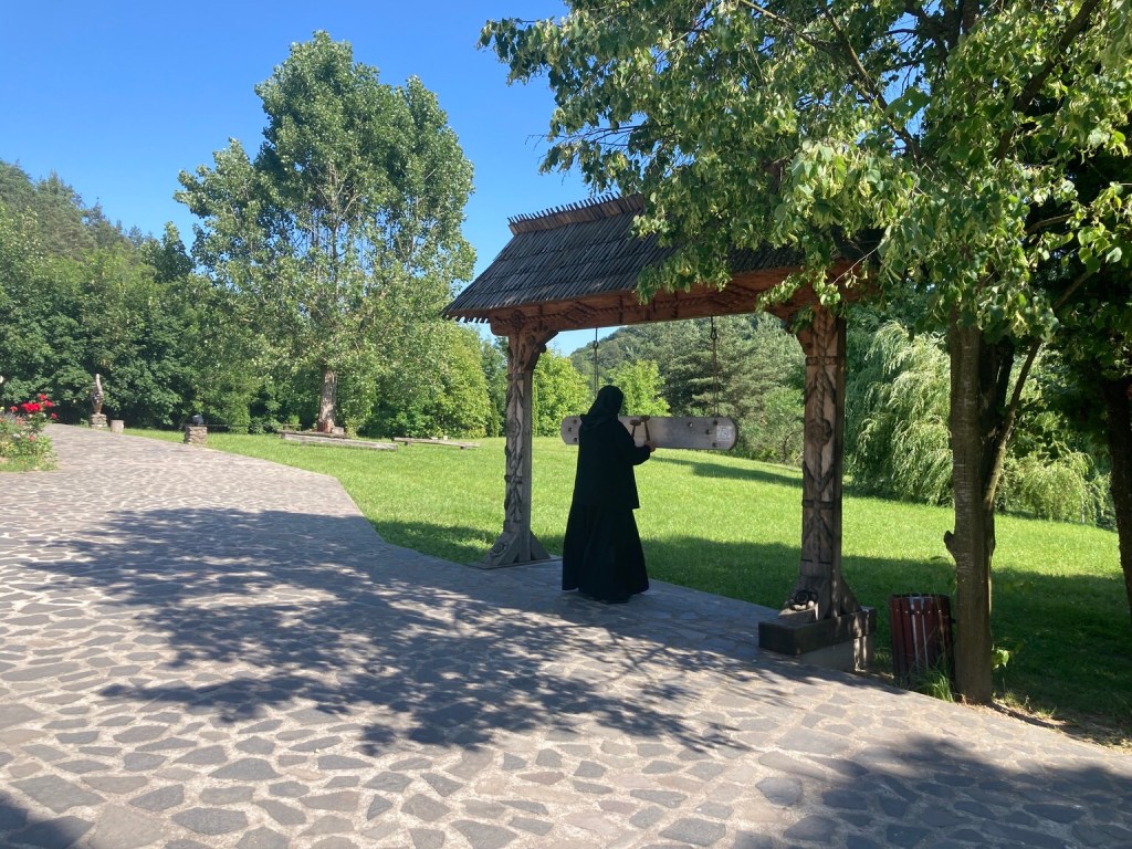 It might be intended to be calm and reflective, but it’s a popular family day out on a Sunday and the piped music made it a little surreal … a little like a theme park! Just before we left, we saw a nun striking a traditional paddle called a semantron to call the nuns to prayer.