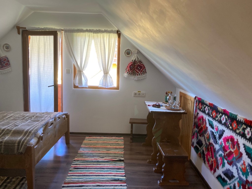 … staying at Pensiunea Lucia in the vila small farm with two houses, a courtyard, barn, orchard and vegetable garden.