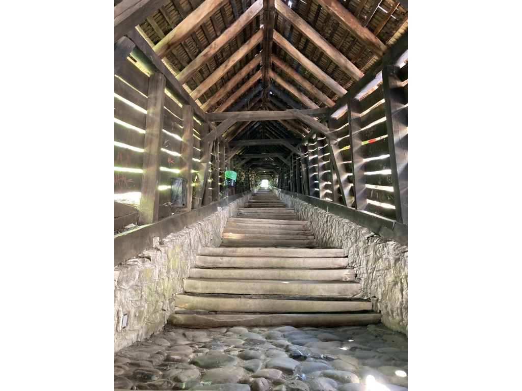 Having been down, now it was time to climb up, taking the Students’ Stair, a covered wooden staircase, to the School on the Hill.